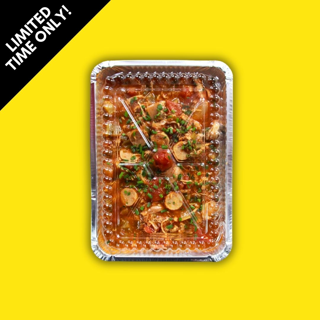 Creole Spices, Celery, Green Pppers, Chicken Stock, Sausage, Salt & Pepper.